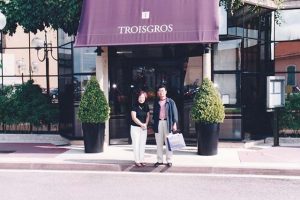 9・11テロの時ディジョンに居たんですけど、飛行機がニューヨークのビルに突っ込む映像がテレビから流れてきました。そのあと、飛行場に行って、飛行機に乗ったら、爆弾が仕掛けられているかもしれない、荷物を点検するので降りてくださいって指示されました。結局二十時くらいに出るはずが、午前二時位までかかりましたね。そのとき日産のゴーンさんがいらっしゃったので写真を一緒に撮っていただきました。無事に帰ってきて、いつも楽しい旅行でした。