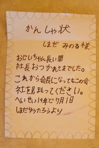 息子は清水市からお嫁さんが来てくれて、順調に生活しています。子どもは、男の子が3人います。息子の結婚式で覚えていることがあります。私は自分の思いを短冊につづって、会場で何人かの人に渡したんですよ。参列者は、知り合いが多かったということもあって、喜んでくれました。そうしたら、みんなが「それください、それください」と言ってくれましてね。内容はたいしたことがないんだけど、気持ちが込もっていたから、心に響いたんじゃないかな。