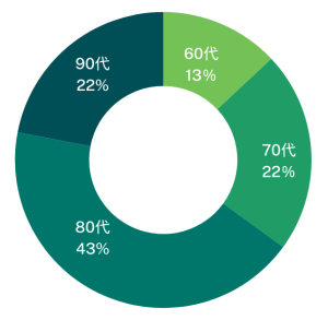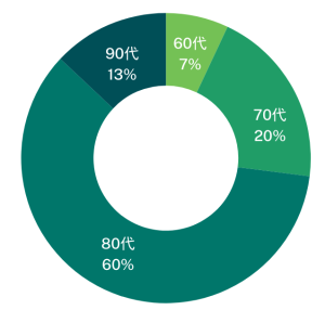 2022年は60代が7%、70代が20%、80代が60%、90代が13%。